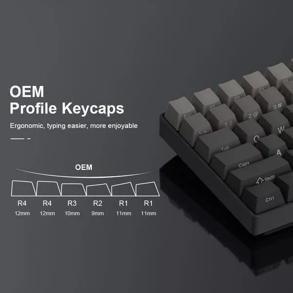 Our keycaps are crafted from high-quality PBT plastic, known for its durability and resistance to wear and shine. The double shot printing method ensures the legends never fade, maintaining a crisp, clear appearance through extensive use. With an OEM profile, these keycaps offer a comfortable typing experience, making them suitable for both gaming and professional environments. The side-printed legends, combined with a unique backlit design, create an elegant and understated look that stands out in any keyboard setup.