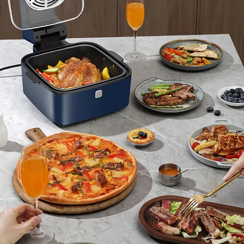 Introducing the 220V Smart Air Fryer Oven, your all-in-one solution for healthier cooking and unparalleled convenience in the kitchen. Say goodbye to clutter with this innovative appliance that combines the functionality of an air fryer, deep fryer, and microwave into one sleek package. Designed for the modern home, it promises to elevate your cooking experience with its visual and automatic features.