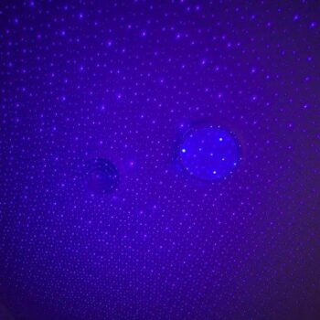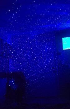 I own two of these projectors, one in blue and the other in red, and they're fantastic. Used individually, they're beautiful, but together, they create an extraordinary effect. I have them set up near my computer, and they light up a significant part of my room. The mix of red and blue creates a lovely purple ambient light, while the points of light remain distinct. They're also compact and portable, which is great for travel