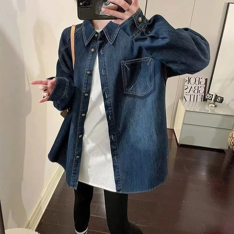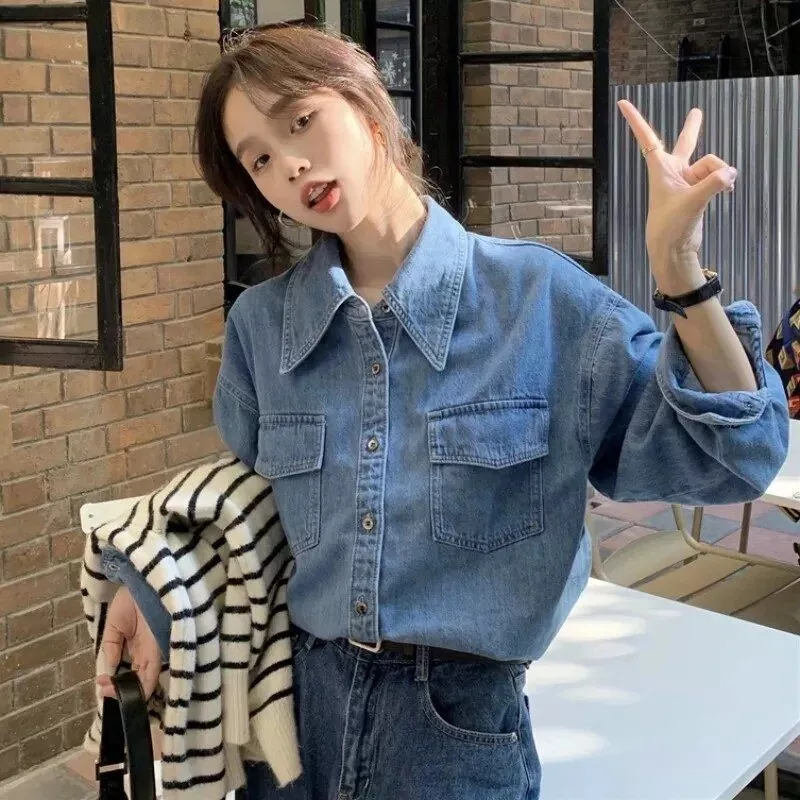 Introducing our Casual Boyfriend Style Denim Shirts – the perfect blend of vintage charm and modern fashion. Crafted for women who appreciate timeless style and comfort, these long-sleeved jean tops are your go-to choice for both spring and autumn.