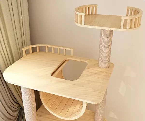 Our cat climbing frame is expertly crafted from high-quality solid wood, ensuring durability and stability. It’s more than just a climbing tower; it’s a comprehensive entertainment center for your cat. The frame includes: