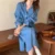 Made from a harmonious blend of cotton and polyester, this dress provides both the durability of denim and the comfort of soft fabric. Its full-length sleeves and mid-calf drop are ideal for those crisp spring days, offering just the right amount of coverage. A neat turn-down collar and a sleek, single-breasted closure add a touch of professionalism to your casual look. With its A-line silhouette, the dress accentuates your waistline, creating an empire effect that’s both slimming and stylish.