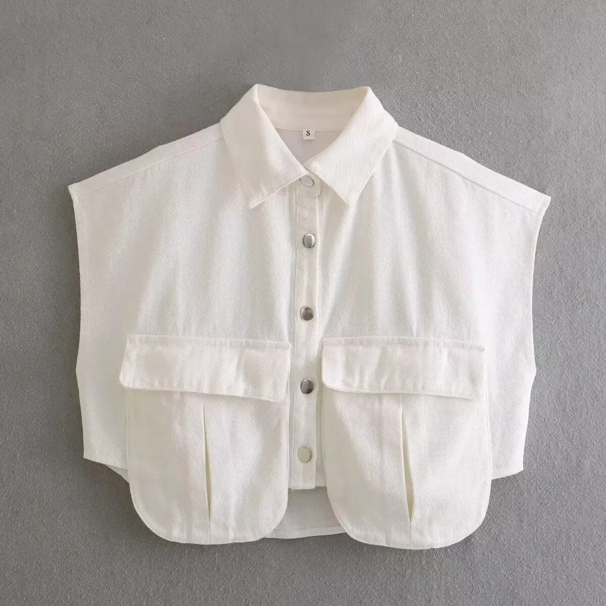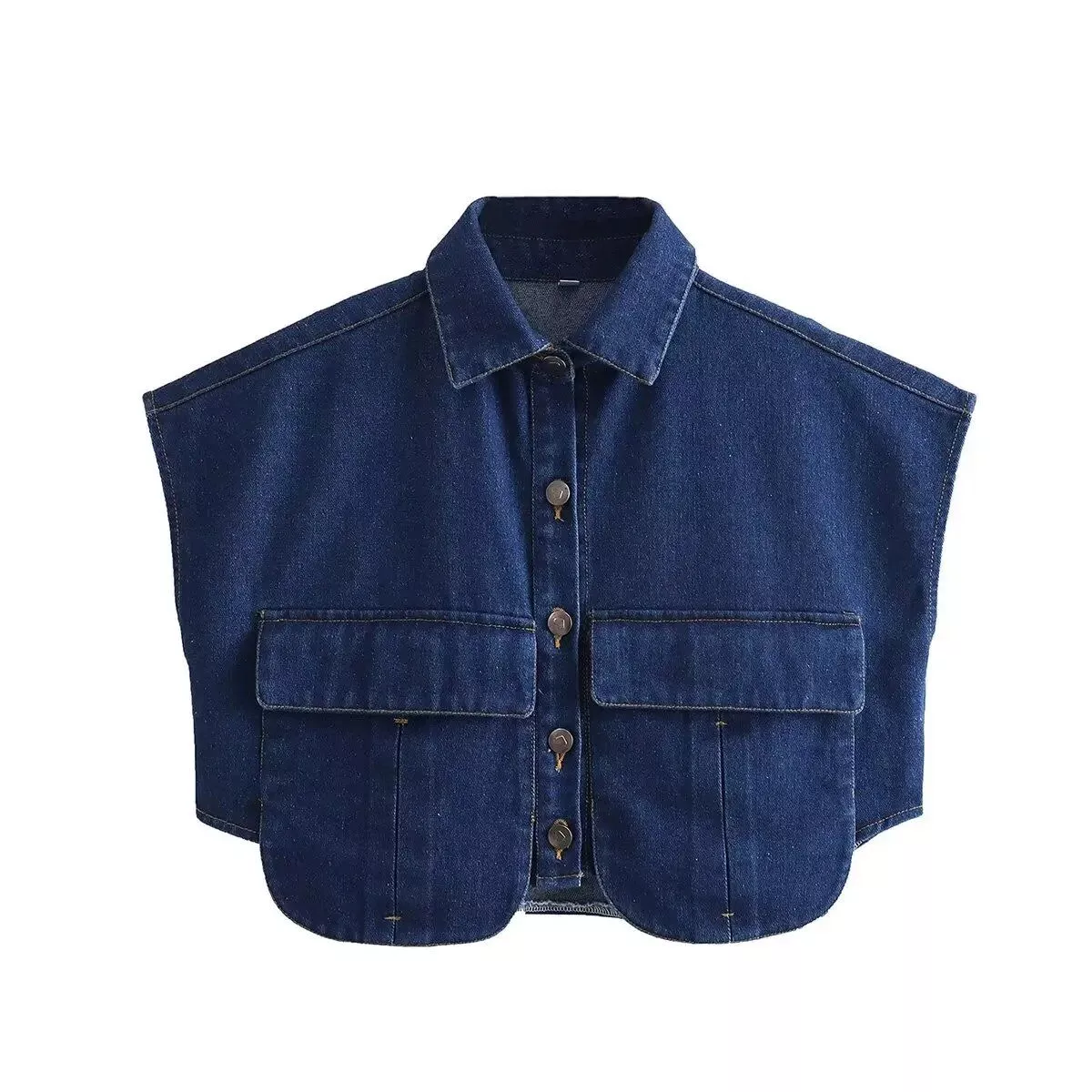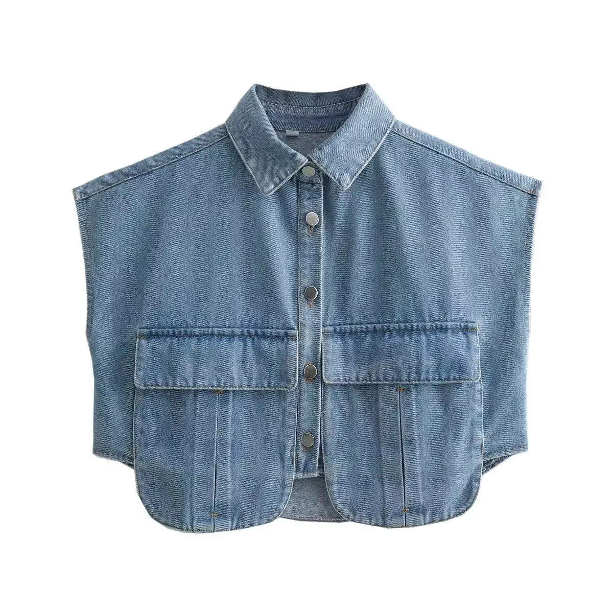 Introducing the perfect fusion of classic denim and modern chic – our Solid Color Sleeveless Denim Crop Shirt is the essential wardrobe staple you’ve been looking for. Designed for the contemporary woman who appreciates a blend of casual sophistication and practicality, this shirt is a testament to timeless fashion. Its solid color and neat silhouette make it a versatile piece for a range of occasions, ensuring you stay in vogue from spring to summer.