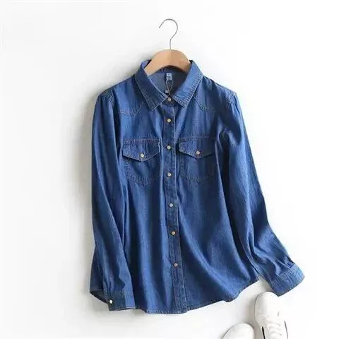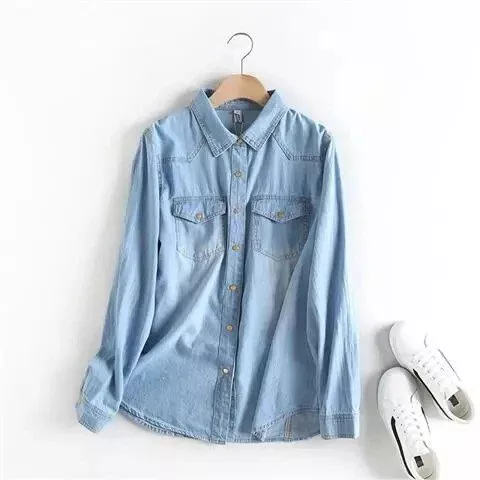Our Casual Denim Blouse comes packed with features designed for the modern woman. It boasts a straight, flattering fit that’s perfect for all body types, full-length sleeves for elegance, and a turn-down collar that adds a polished touch to the otherwise laid-back design. The single-breasted closure provides a seamless look, while the solid denim fabric ensures durability and easy maintenance.