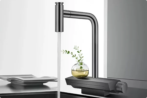 This faucet has been a fantastic addition to my kitchen renovation. The sleek, modern design pairs beautifully with the functionality of the pull-out sprayer. The water flow creates a stunning waterfall effect that's both beautiful and practical. It's made from high-quality materials, ensuring durability. Installation was a snap, and it has significantly improved my daily kitchen tasks. It's not just a faucet; it's a statement piece that elevates the entire room