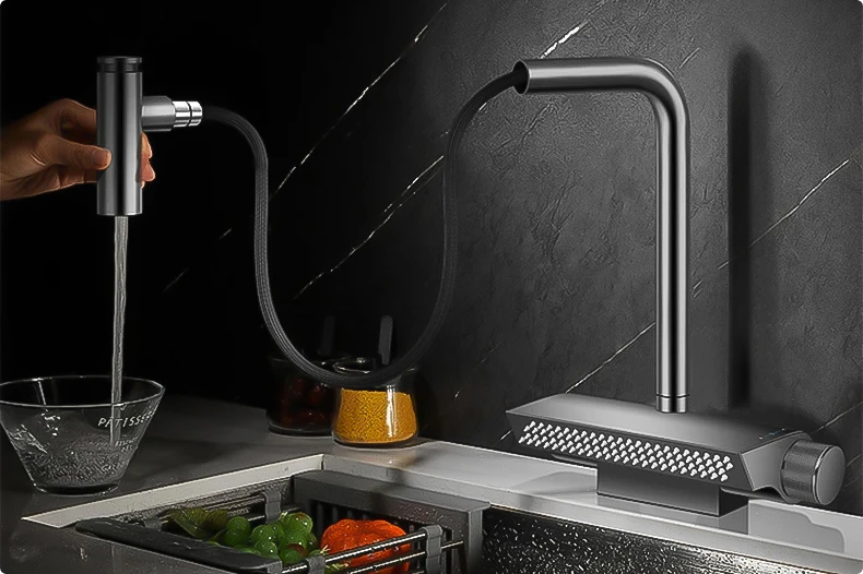I recently upgraded my kitchen with this stunning faucet and it's been a total game-changer. Its sleek design adds a modern touch, while the waterfall feature brings a sense of calm and luxury to my daily routines. The pull-out sprayer is incredibly handy for thorough cleaning. It's solid, durable, and was surprisingly easy to install. I'm absolutely in love with it