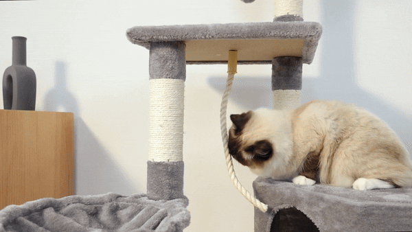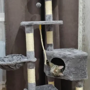 • Scratching Posts: Wrapped in sisal rope, these posts satisfy your cat’s scratching needs, protecting your furniture from damage.