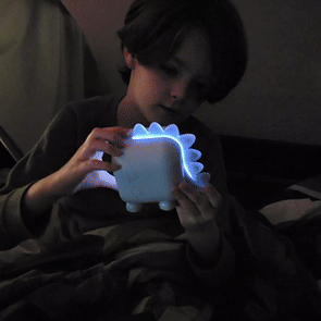 This dinosaur clock is adorable. My kids love it. Easy to set up, lights up in different colors, making a perfect night light. No issues after months of use. Highly recommend!