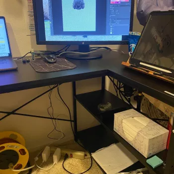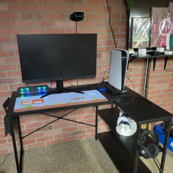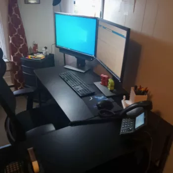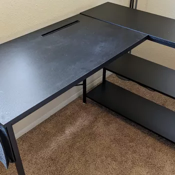 Needed a new desk after moving that could accommodate work and personal PCs. This turned out to be perfect for the price. Great size, plenty of space