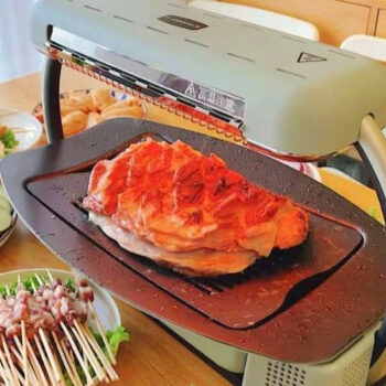 This electric grill stands out with its user-friendly design. The non-stick surface made of high-quality Ptfe ensures that your food grills evenly without sticking. The detachable oil collector makes clean-up a breeze, allowing you more time to enjoy your meals rather than cleaning up. With its powerful performance and compact size, it’s a must-have for every modern kitchen.