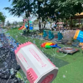 Imagine a sunny day at the beach, a lively birthday party, or just a casual evening in the backyard – our bubble gun fits every scenario. It’s not just a playtime accessory; it’s a creator of joyful memories. Perfect for group play, it encourages social interaction, active games, and develops hand-eye coordination.