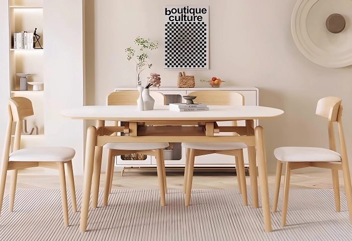 Our dining room has been completely transformed thanks to this expandable Nordic table. It comfortably fits our family of four for daily meals and easily expands to accommodate six when we have guests over. What impresses me the most is the minimalist design that not only adds a touch of elegance to our home but also embodies functionality at its best. Cleaning is a breeze, making it an ideal choice for families looking for both style and practicality.