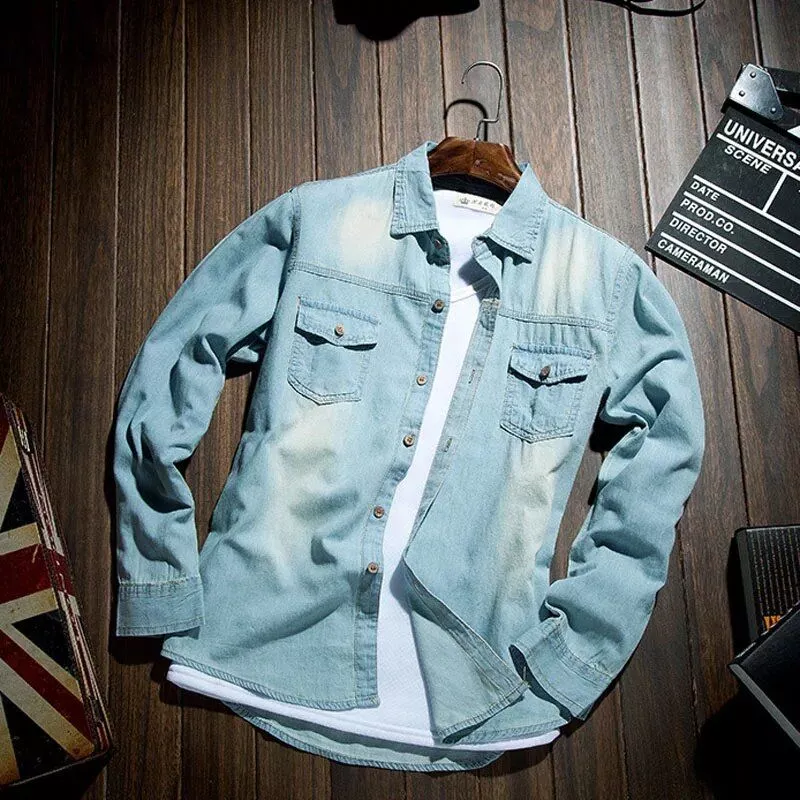 Introducing the Fashion Classic Retro Jeans Shirt – the ultimate addition to your spring and autumn wardrobe. Crafted with meticulous attention to detail, this slim-fit denim shirt from MY850 is designed to make you stand out in style.