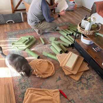 Simple assembly, cute and sturdy! Fingers crossed the cats won't wreak havoc too soon.