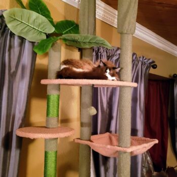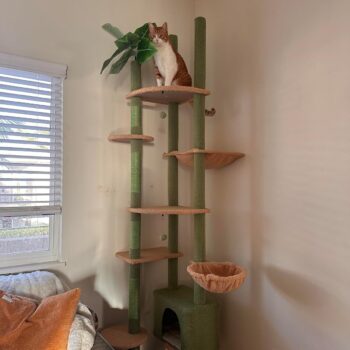 Although my little guy isn't a fan of the hammocks, he adores his tree, relishing the elevation it provides. Its stability, thanks to being a tension cat tree, offers him a secure perch to survey his kingdom.