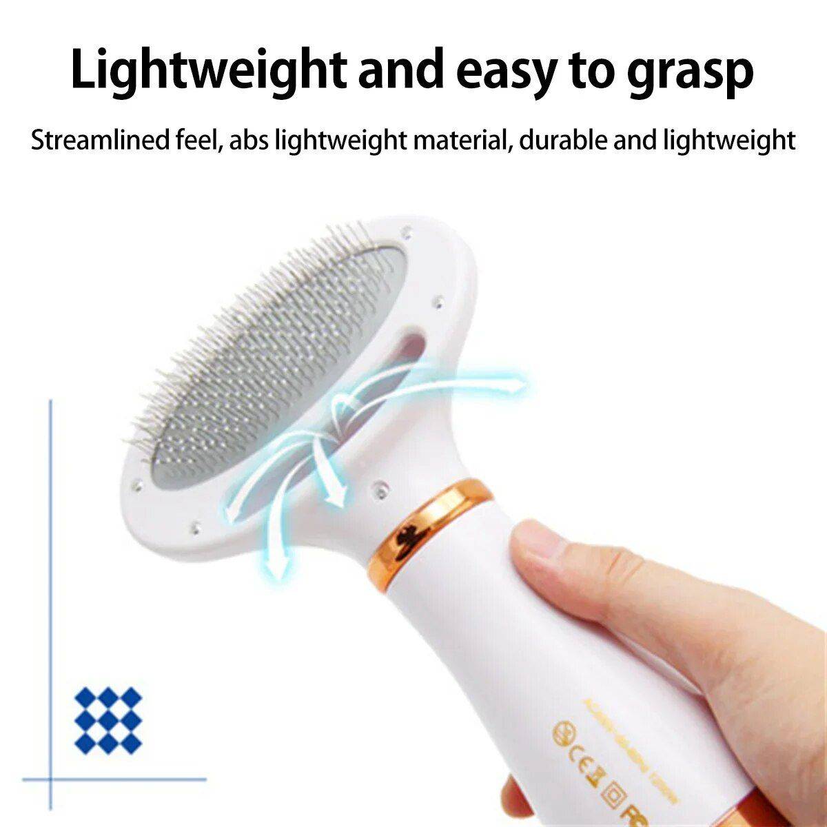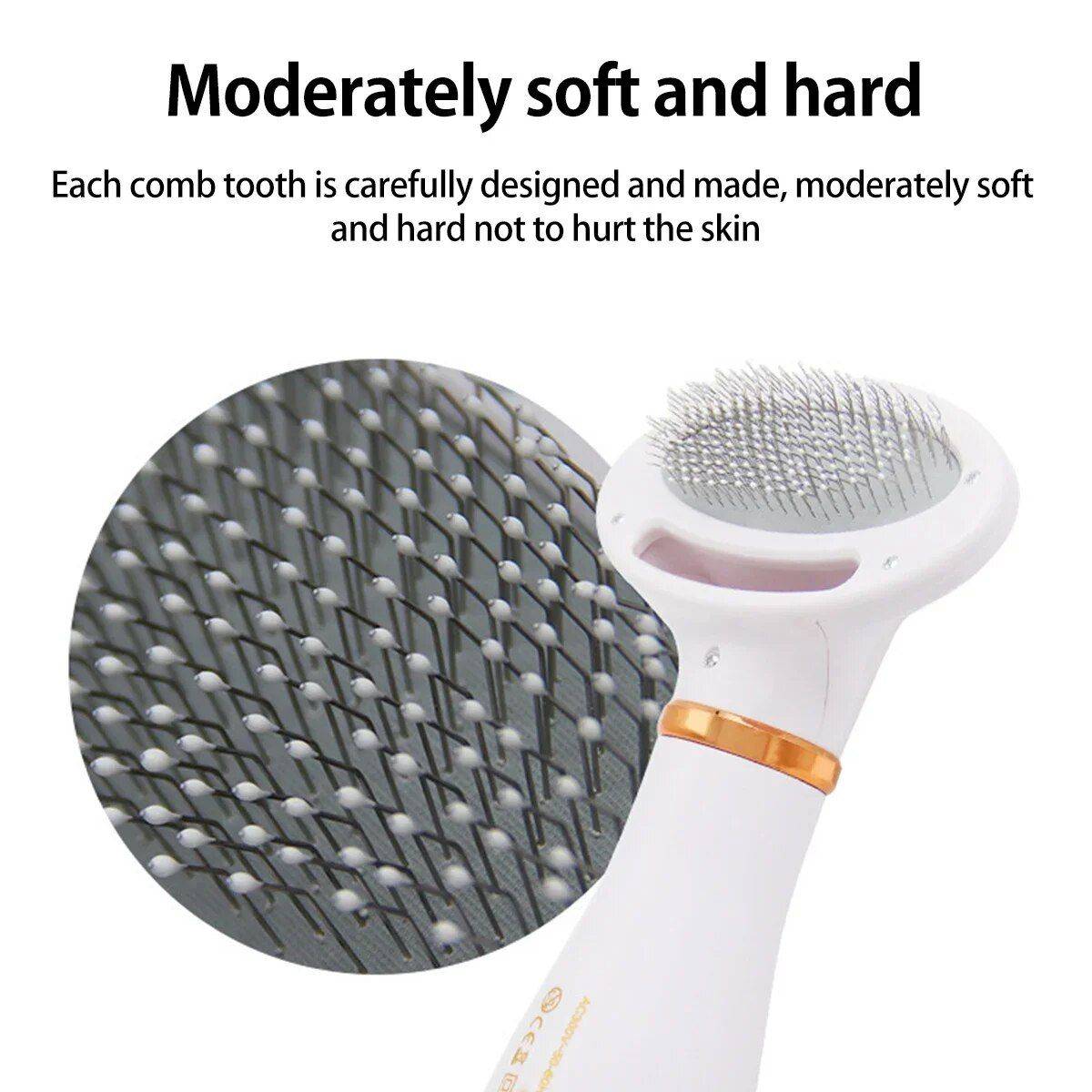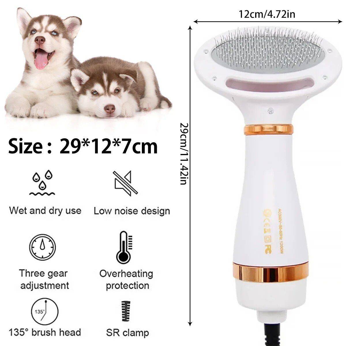 [2 in 1 Pet Grooming Dryer] This pet grooming dryer is a combination of a dog hair dryer and a hair brush to make it easier to dry your pet after a bath, and a smooth brush to remove tangles and loose fur, Let drying and grooming go hand in hand.