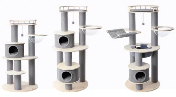 What sets our Luxury Wooden Cat Tower apart is its combination of functionality, durability, and elegant design. The use of high-quality wood not only ensures its longevity but also adds a touch of sophistication to your home. It’s not just a cat tree; it’s a piece of furniture that both you and your pet will love.