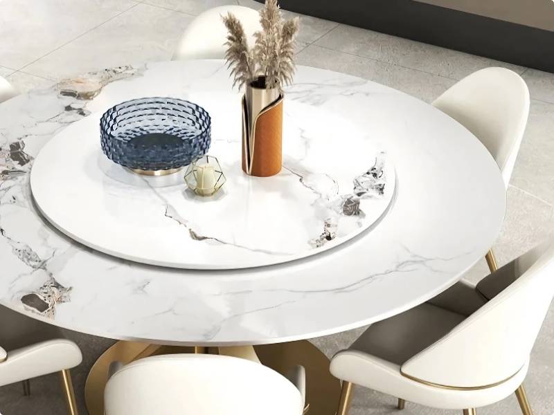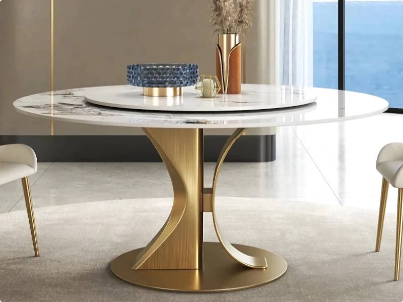 The Luxury Marble Round Dining Table is a dream come true for my dining space. It's not only visually stunning with its gold frame but also incredibly functional with the turntable. The turntable is not just convenient but also a unique feature that all my guests admire. It's the perfect blend of style and convenience.