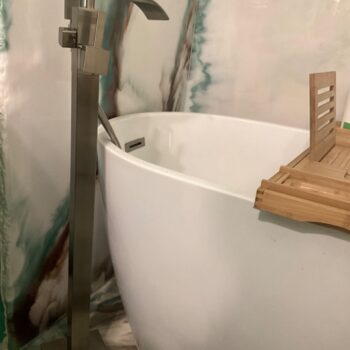 This floor-standing faucet is not only a functional addition but also an artistic statement. Ideal for modern, minimalist, or any contemporary bathroom decor, it stands out as a piece of art. Whether you are renovating or building a new bathroom, this faucet adds a touch of elegance and sophistication.