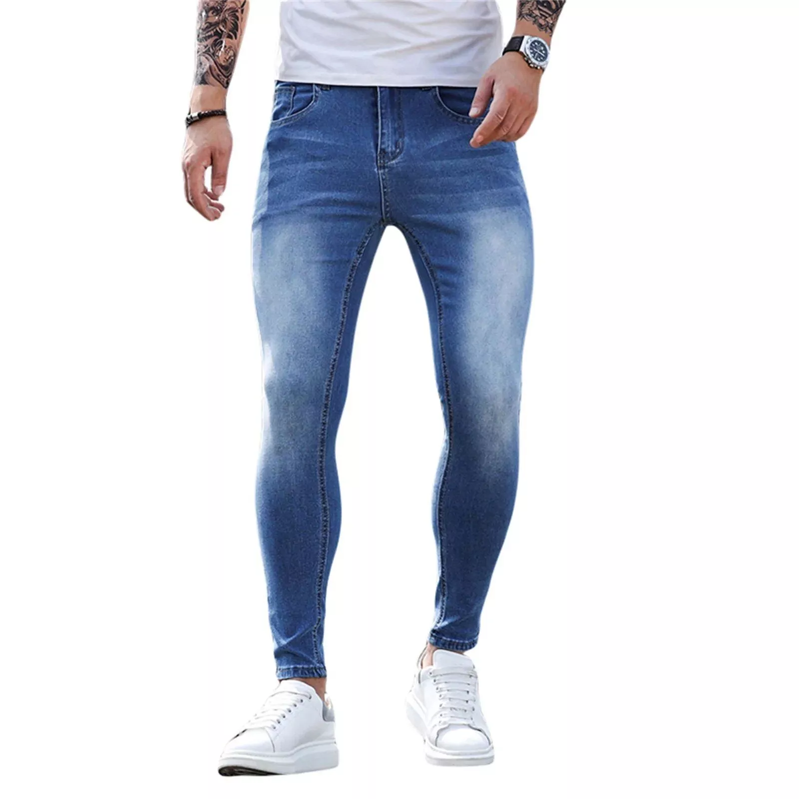 Introducing our Men’s Slim-Fit Stretch Denim Jeans, the ultimate game-changer for the style-conscious gentleman. Meticulously designed for the modern man, these jeans are the epitome of casual elegance and versatile functionality. Whether you’re stepping out for a casual coffee date or dressing up for an evening out, these jeans will be your go-to wardrobe essential. Their solid pattern, complemented by the light wash, adds a touch of sophistication to your daily ensemble.