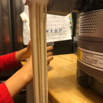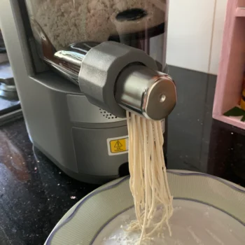 The machine looks impressive and is compact. It produces noodles quickly and conveniently; you just need to add the dough and wait for the noodles to come out, saving a lot of time.