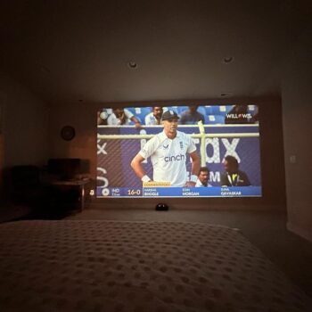 We recently built on a screened in porch and now watch all of our sports there using this projector. We just love it. Hooked up to a Bluetooth speaker and invite friends over, now it is a party. Simple to set up.