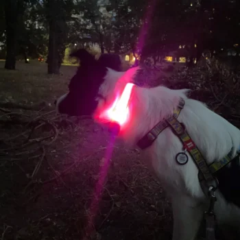 The night collar's multifunctionality is a boon for our evening walks. Its visibility reassures me as cars can spot my dogs from a distance, especially with the flashing option to draw attention.