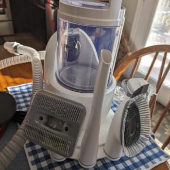As a German Shepherd owner, grooming multiple times a week is a must. This vacuum has made brushing her ten times easier and cleaner. There's no more hair flying through the air and getting everywhere—it all gets neatly contained in the easy-to-dump canister. Plus, it's extremely quiet and doesn't scare my dog.