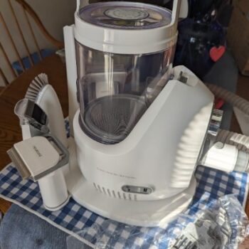 I'd been eyeing a similar vacuum grooming system advertised on Facebook, but its tiny canister filled up after just a few passes with the clippers. So, when I stumbled upon this kit with its 2-liter canister—twice the size of the other brand—I decided to give it a shot. Having groomed my 14-year-old cocker spaniel her entire life, I'm no stranger to grooming tools. I'd previously tried a vacuum groomer attachment that connected to a shop vac, but the noise terrified her, and cleaning the shop vac was a hassle. This grooming tool is remarkably quiet, especially on the lowest speed, which was surprisingly effective at sucking up hair while I groomed her. With her thick coat, typical of a show-quality cocker spaniel, I had to empty the canister four times, but the process is so effortless that it didn't bother me in the slightest. The clipper combs attach securely and remain in place, though I did find adjusting the clipper blade slightly necessary to prevent it from touching the comb—an adjustment I made primarily to keep things even quieter. 👍
