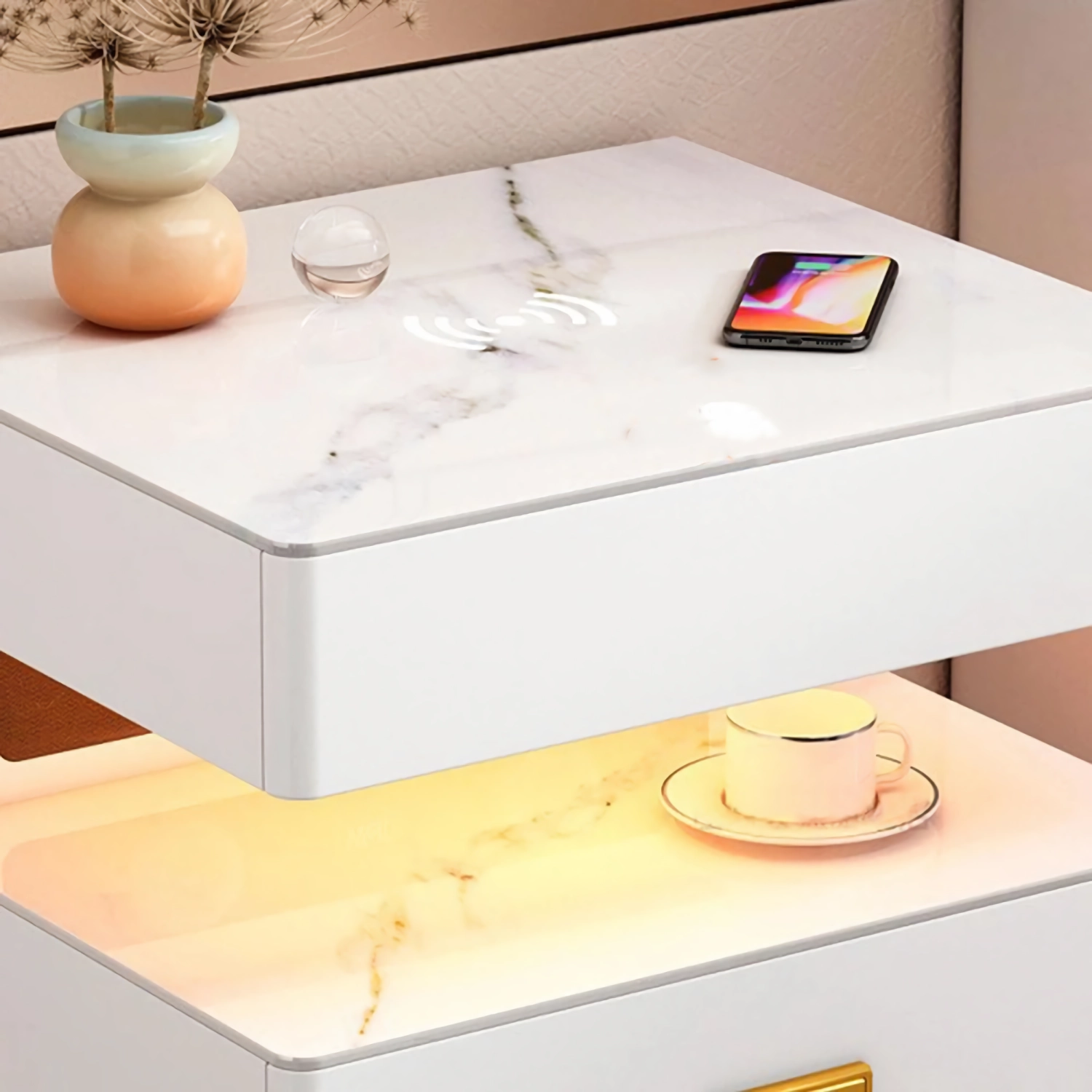 Absolutely in love with my new bedroom side table! The quality is unmistakable, and it brings such an elegant touch to my room. The drawers glide smoothly, offering ample storage for my essentials. Setting it up was a breeze, and the added tech features like the RGB light strip and wireless charging pad have made my bedtime routine so much more convenient. It's a perfect blend of form and function!
