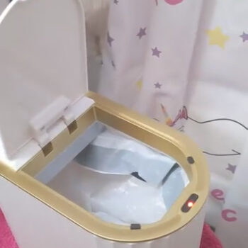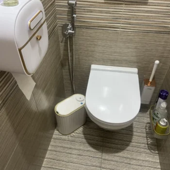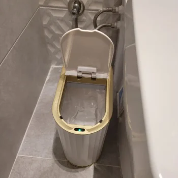 One issue I encountered was the trash can's proximity to the toilet bowl, which caused the door to open every time someone sat down. I had to move the trash can further away to prevent it from opening every few seconds.