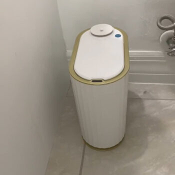 I'm happy with this product; it works great. Its small design is ideal for a toilet room. The deodorizing feature and motion detection are excellent. It came with a gray round topper, which I assumed was to hold the gold bag in place, though I'm not sure how to use it. Regardless, the can works well, so maybe that piece was just for shipping. Either way, I really like it.