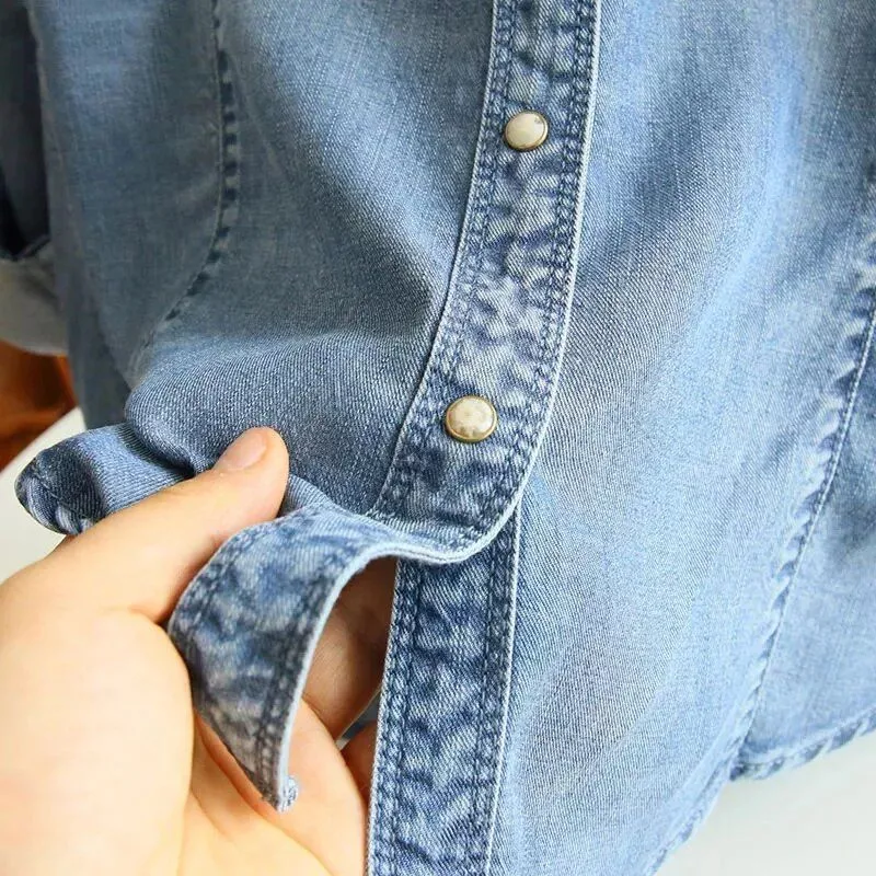 Step into the new season with our Classic Soft Denim Polo Shirt, a garment that blends timeless style with contemporary design. Crafted for the modern woman, this shirt is the epitome of casual sophistication, perfect for those who appreciate a touch of classic flair in their wardrobe. Its lightweight denim fabric provides an effortless transition from the crispness of spring to the warm embrace of summer, ensuring you remain at the forefront of fashion without compromising on comfort.