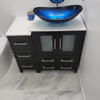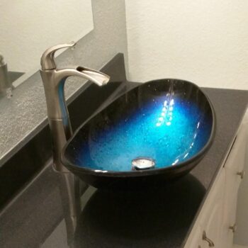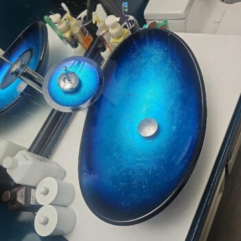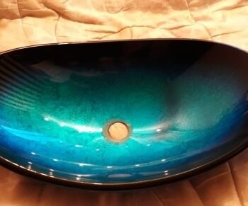 This sink was too unique and well-priced to pass up. Super pleased with the quality and design. It made it here all in one piece, which was a relief given it’s all glass.