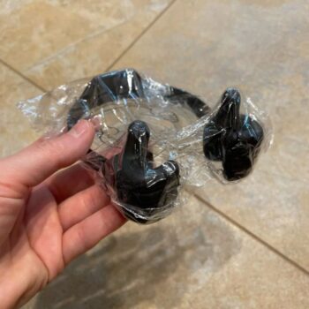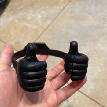 This is a hilarious gift that also functions well. The thumbs can be moved to adjust.