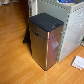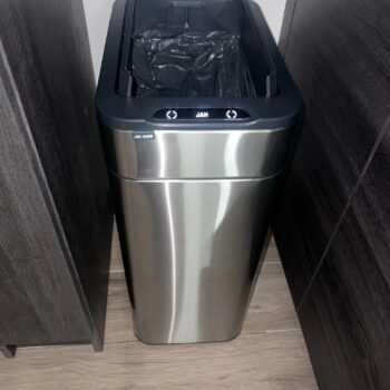 Genuinely liking this 10.6-gallon trash can. It's great that it stays open for a bit when you use it and it's really quiet. Figuring out the battery setup was a bit confusing at first, but got it in the end. The way it holds the garbage bag open is neat, and its slim design fits tight spaces nicely.
