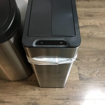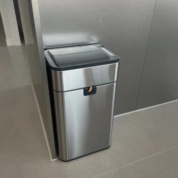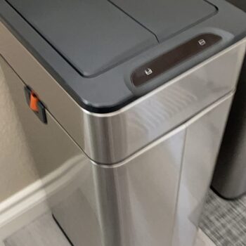 Got two of these, one for trash and one for recycling. The slim design and quiet operation are the best parts. Just wave your hand over it, and it opens and closes by itself. Definitely would buy again, as evidenced by getting two.