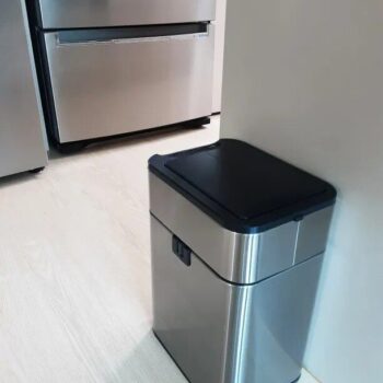 Whether it’s time to toss leftovers in the kitchen, discard papers in the office, or dispose of toiletries in the bathroom, this smart bin is perfectly suited for any room. Its rectangular shape fits neatly against walls or cabinets, maximizing space without sacrificing capacity.