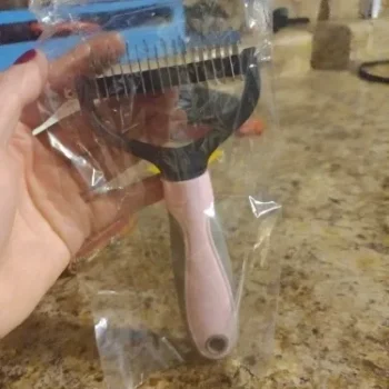 I've finally found the holy grail of pet grooming with this double-sided hair remover! It's a complete lifesaver, tackling the stubborn knots and loose fur on my golden retriever with ease. The stainless steel teeth glide through tangles without any discomfort, leaving behind a beautifully smooth coat. What's more, I've noticed a healthy sheen and less shedding around the house. The ergonomic design makes it comfortable for both of us during grooming sessions. A must-have for any pet owner tired of fur-covered furniture!