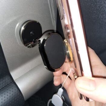 A nice, useful, and simple-to-use phone holder with a strong magnet. Its compact size allows installation in various locations.