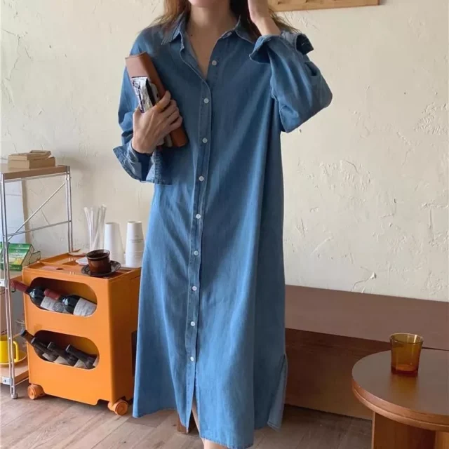 Our blouse is designed with practicality and poise in mind. The double front pockets not only serve a functional purpose but also add an element of casual flair, while the single-breasted closure ensures a snug and secure fit. The turn-down collar adds a touch of professionalism, making it ideal for business environments. Moreover, the non-stretch denim fabric maintains its shape throughout the day, ensuring you look as sharp in the evening as you did in the morning.
