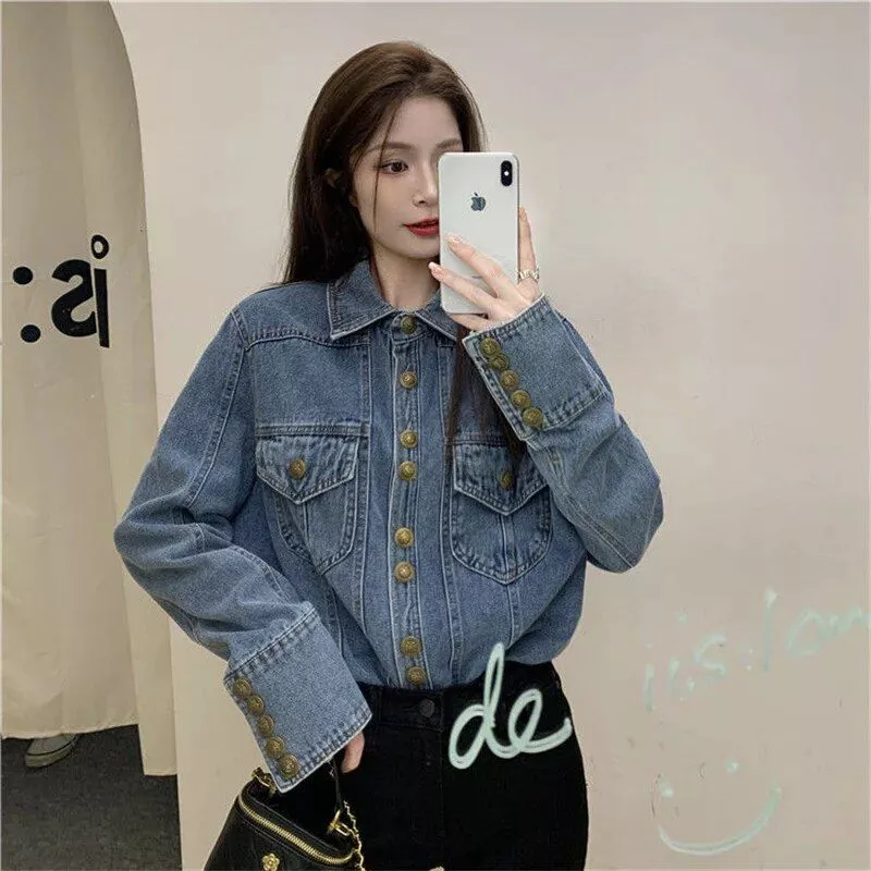 Upgrade your style today and experience the comfort and elegance of our Vintage Korean Fashion Denim Blouse 2022. Order now and be the epitome of timeless fashion!