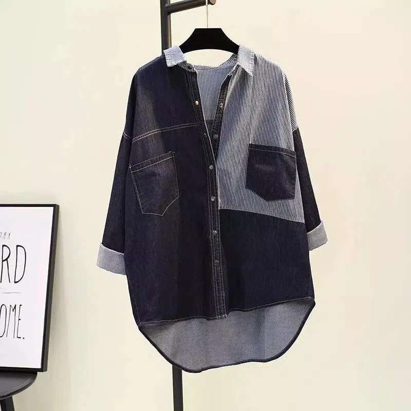 Introducing the must-have wardrobe staple that effortlessly blends classic charm with contemporary fashion – our Women’s Oversized Patchwork Denim Shirt. Designed for those who appreciate a relaxed yet chic aesthetic, this casual long-sleeved jean blouse is perfect for a variety of occasions, from a laid-back day out to a stylish evening gathering. With its easy-going vibe and versatile design, it’s a piece that promises to be your go-to favorite for seasons to come.