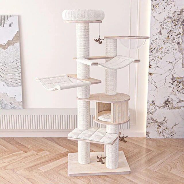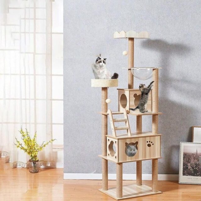 Don’t wait any longer! Elevate your cat’s indoor experience with our Deluxe Wooden Cat Tower. It’s more than just a cat tree; it’s a haven of happiness for your furry family member. Add to cart now and bring joy to your cat’s daily life!